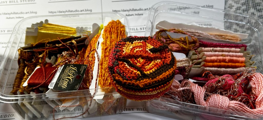 I decided to move forward with another cupcake in a series. This one is in fallish colors. As you can see these are many color directions it can turn to by the choice of accessory colors. I decided on four so have one more after this one. Then back to bigger wall art.