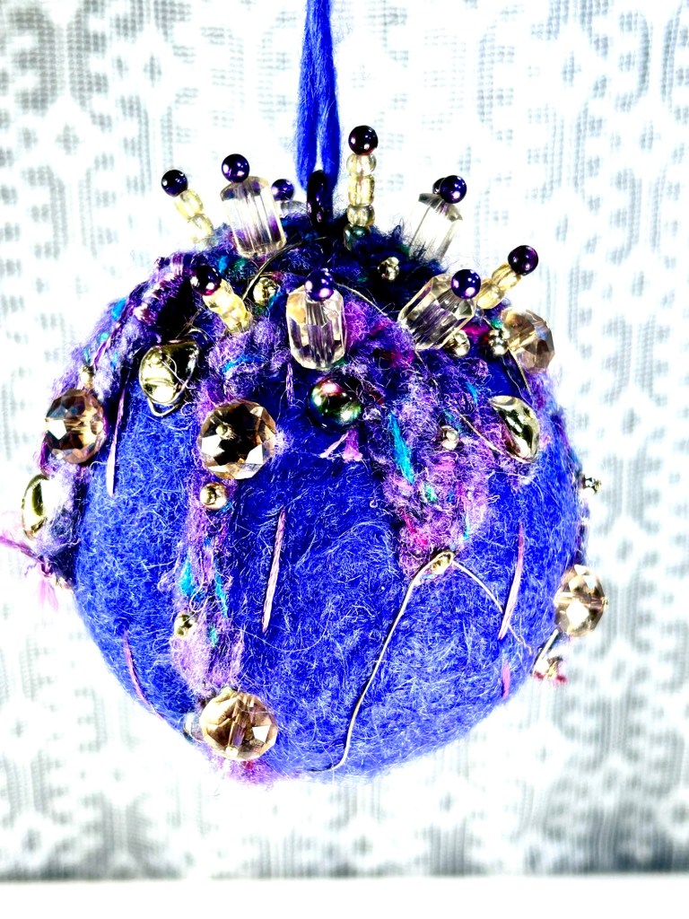 This purple orb is crochet then felted in my 1950’s Speed Queen washing machine.