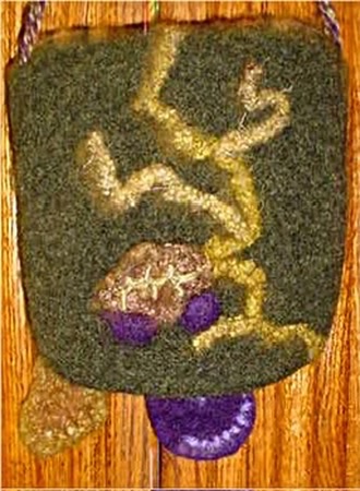 This was crocheted in wool yarn and then felted in my 1950’s Speed Queen washing machine.