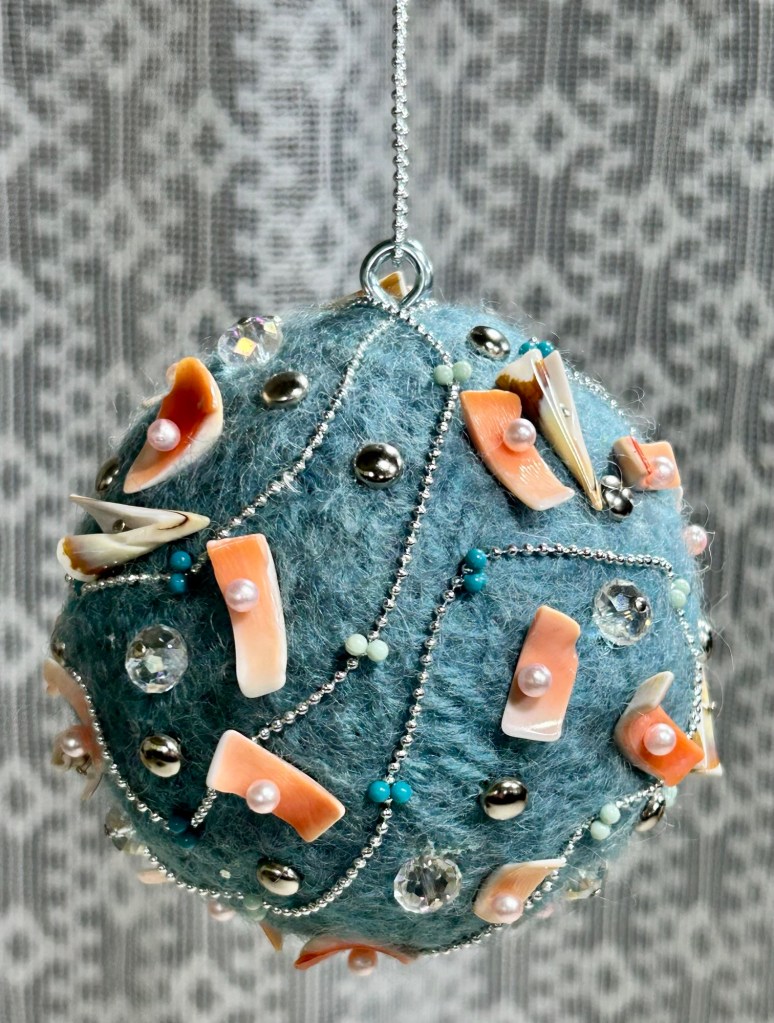 This dusty blue orb is crochet then felted in my 1950’s Speed Queen washing machine.