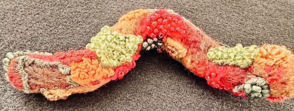 Of course as I was working on it the beading began to look like fish eggs and then as I changed colors it reminded me of a cooking show that had many colors of caviar. So it got that title because of this.