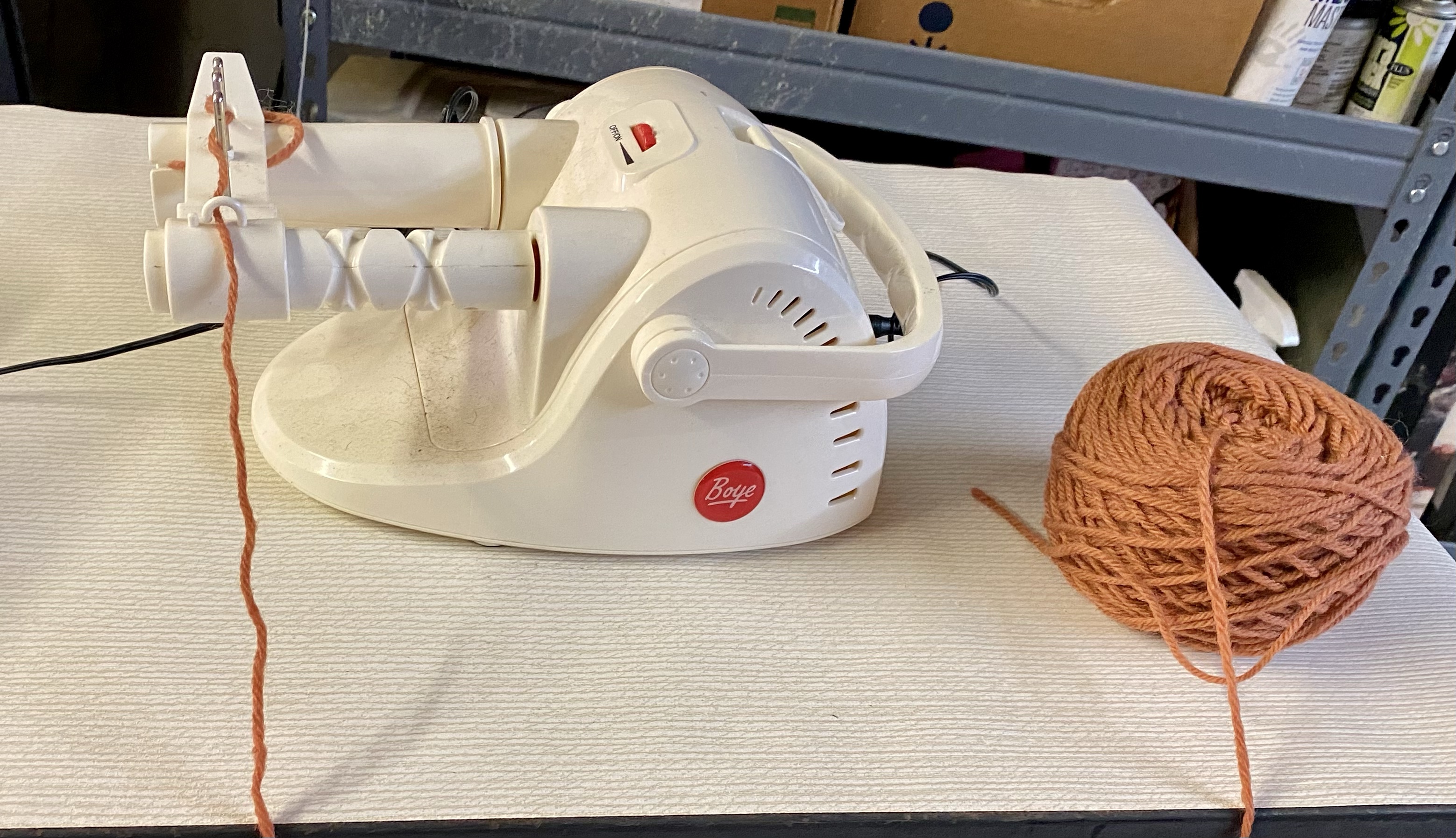 I guess I should say rewinding yarn🧶. Did not like how a piece was working out so undone yarn and starting over.