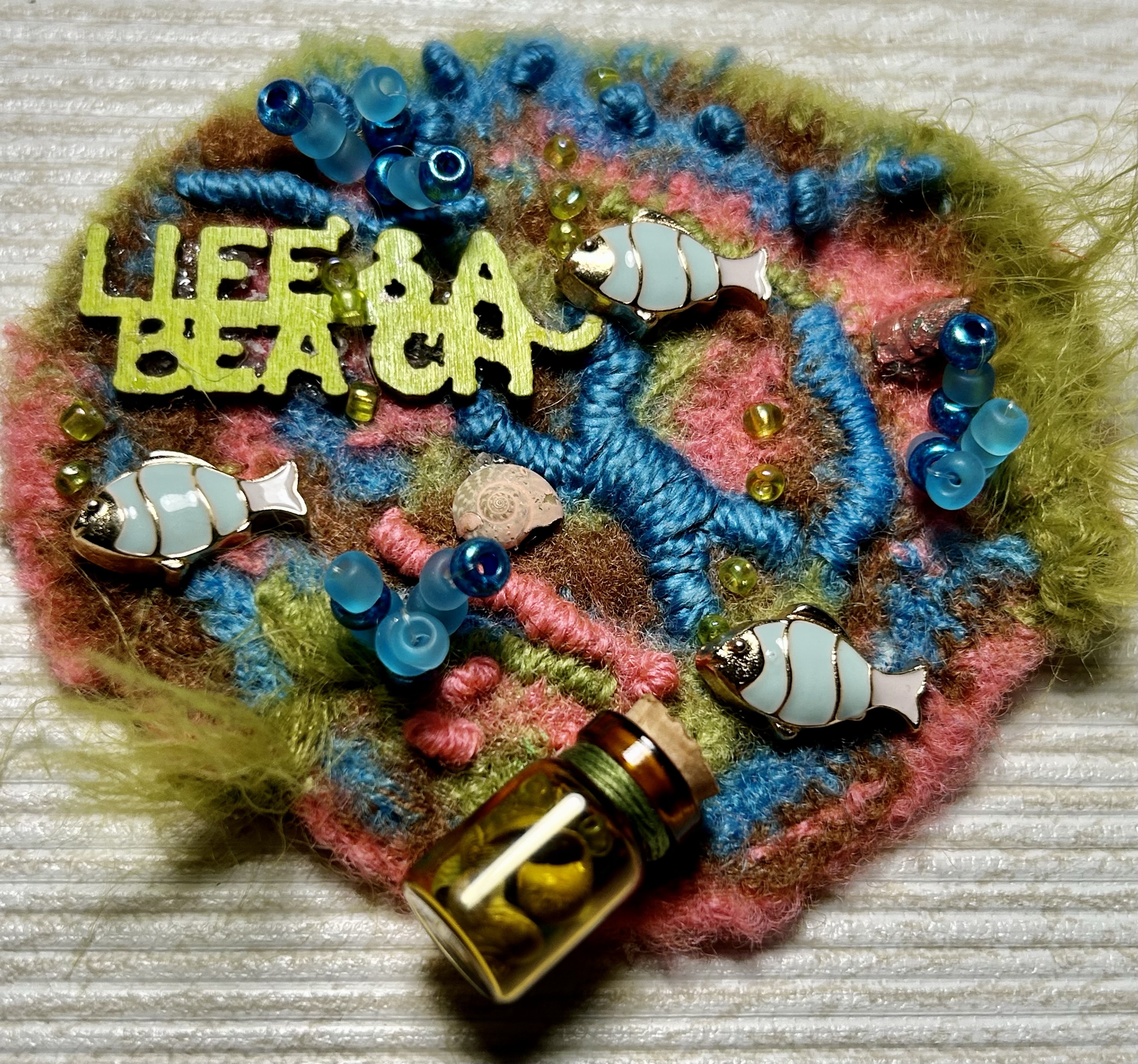 While I was making this piece and trying to ensure that they stay in place before sewing them down, what if I just tack them down with a dot of super glue they will be right where I needed them and can move the piece around as I sew them all in their place. This was quite a game changer for me.